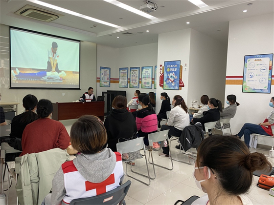单人及双人高质量心肺复苏、除颤仪AED使用、气道梗阻急救……担任此次培训工作的上海市红十字会派出了富有经验的讲师团队,确保每5名学员就有一名教师面对面、手把手进行教学,每堂课25人的小班教学,确保每位老师的实操训练保时保量。