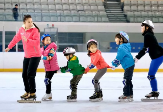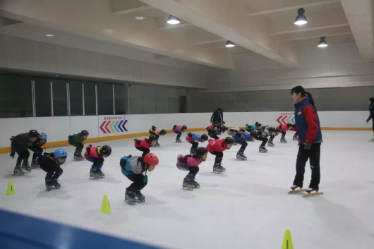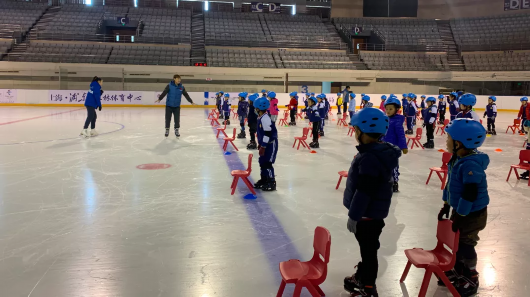 “两脚两腿并拢,两手在背后互握,呈现蹲屈姿势。大小腿的夹角成110度……”“不要着急!看准人再传球,注意配合……”在上海市浦东新区飞扬冰上中心运动场,专业老师正在带领学生们练习滑冰和冰球。虽然刚学没多久,有的学生战战兢兢,但学习热情仍然高涨,听老师讲解动作要领时也都聚精会神。“滑冰、冰球太好玩了!不仅有益于身体健康,还可以锻炼身体的协调性。我现在不仅在学校学习滑冰,回家以后也会自己练习。虽然还不是很熟练,但我一定会坚持学习的。”