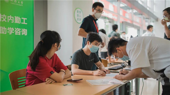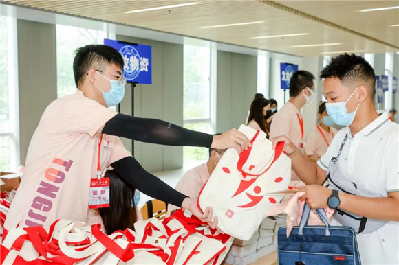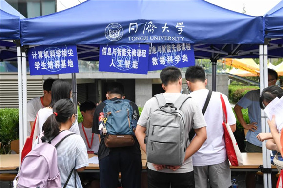 同济大学衷和楼报到现场,新生院八大学堂和国豪书院精美的礼包、详细的资料早已齐备,同时,还有30个拔尖人才培养特区项目,在迎新现场设摊接受新生报名咨询、申请。此外,同济延续往年特色继续开辟充满温情的“绿色通道”,对申请资助的学生进行“一站式”服务。