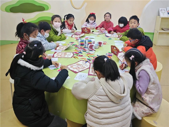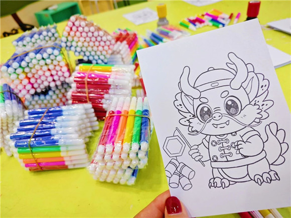 桌子上摆满了五彩斑斓的画笔,仿佛给你带来了无限的创作灵感。在这个神奇的角落,小朋友们专注地坐在椅子上,手握着彩笔,在画纸上涂抹、勾勒,画出了贺岁龙。