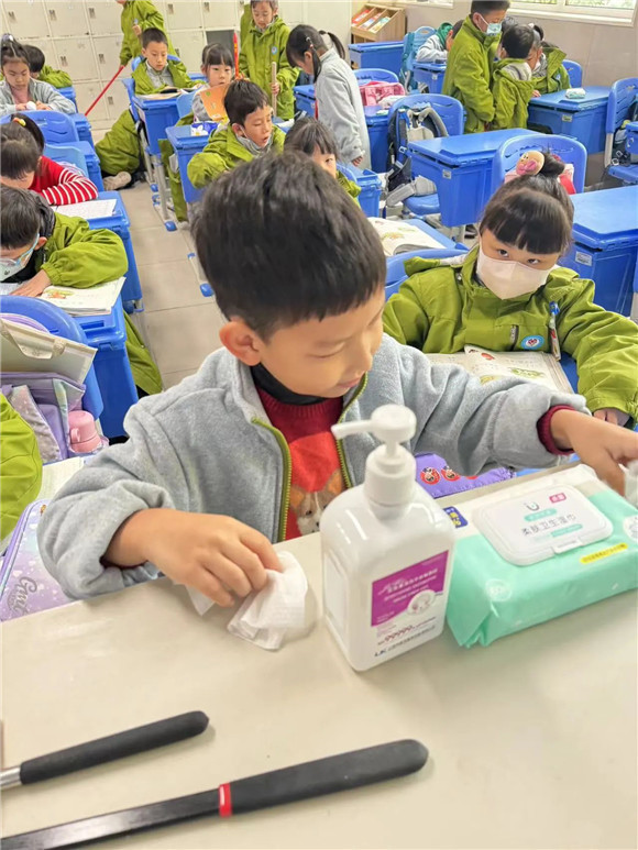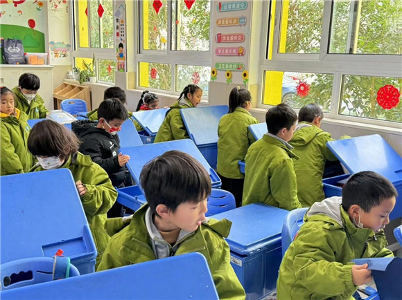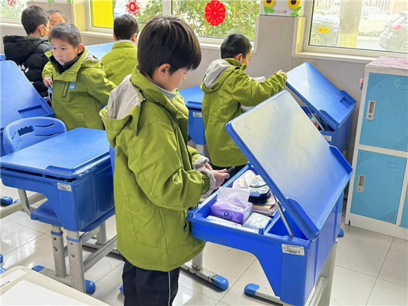 一年级的小朋友们需要在规定的时间内将桌面上的书本整理整齐,而二年级的小朋友们需要迅速清洁桌子上被纸屑弄脏的地方。孩子们积极参与,热爱劳动的精神在他们身上得以展现!