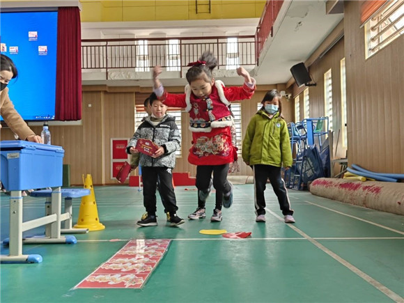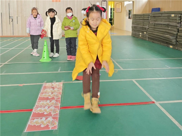 在老师们的巧妙设想下,年兽被"封印"在地上,小朋友们欢快地以立定跳远的姿态,迈过了那个年兽的障碍。就这样,他们驱散了眼前的恐惧。"年兽"也因此被赶跑了!这个特别的活动不仅仅展示了小朋友们在体育课上的锻炼成果,更让他们感受到了胜利的喜悦和勇气的力量。