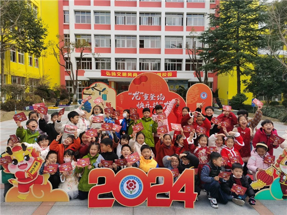 "八面玲‘龙’,趣意生",随着"龙的传人"、"龙年大吉"、"生龙活虎"、"龙马精神"……童趣盎然的声音在空气中传播开来,传递着坚定的力量和自信的风采。原来,这是一群小朋友在识字游戏中欢欣鼓舞地挑战自我!在欢乐而刺激的氛围中,他们不断学习新成语,积累知识的同时,也展现出浓厚的学习激情。