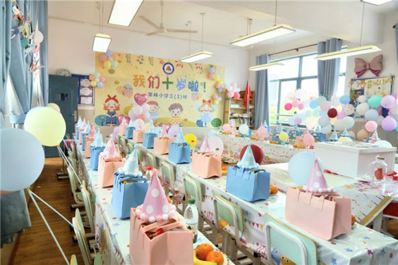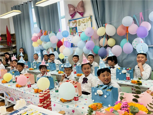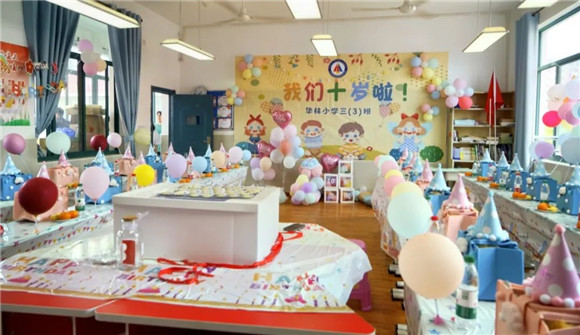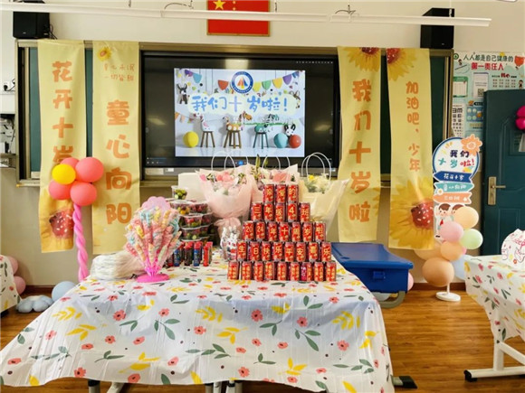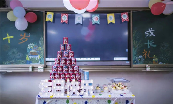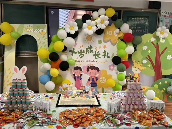 集体仪式后,各班级开展了别出心裁的十岁生日庆祝活动。导师们和家长志愿者们精心布置:漂亮的展板、多彩的气球、精美的礼物、美味的蛋糕…