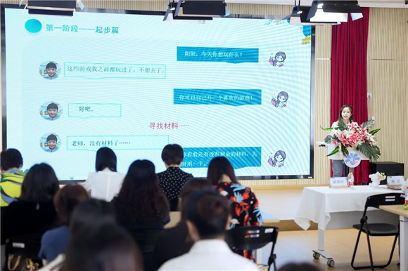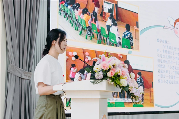 语言专场活动由春之声幼儿园承办,来自春之声、孙桥、雪野幼儿园的三位教师展示语言领域教学活动;由小天使、方竹、小浪花幼儿园三位教师进行案例分享;特级教师应彩云对本场活动做专家点评。应彩云老师对本次活动给予了极大的肯定,赞赏教师们能为孩子营造温馨适宜的阅读环境,善于点燃活动氛围,同时也提出了师幼互动中"要适当留白"的话题,引发大家思考。