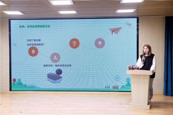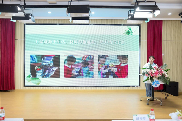 最后一天的游戏专场活动在百合花幼儿园开展,通过户外游戏现场的观摩,我们看到了幼儿在阳光下快乐游戏、自由探索、深度学习的样态。丰富的游戏环境、多样的游戏主题、自主的游戏状态让教师和孩子们都沉浸其中,享受游戏带来的乐趣。来自凌民、莱阳、上炼三村、灵山、百合花、孙桥幼儿园的六位教师分享游戏案例。上海资深学前教育游戏专家陈石静老师对本场活动进行精彩点评。陈老师从幼儿游戏的本质出发,基于脑科学的理论支持,揭示了户外游戏对于幼儿建立经验联结的重要性。提出希望教师在观察中要学会从海量的幼儿信息中筛选出关键信息,以儿童的视角去支持幼儿在游戏中的体验、探索和发现。
