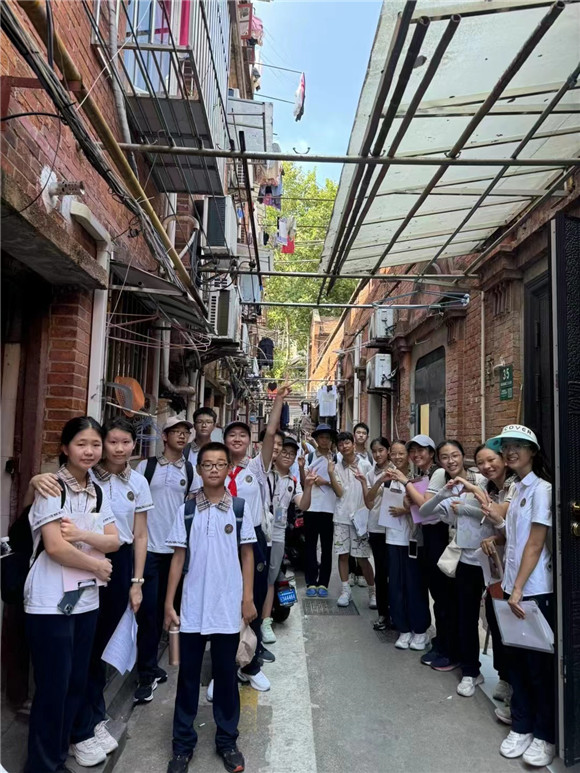 行走的课堂,让不少学生感到“既熟悉又陌生”。熟悉,是因为提前阅读了相关的文学作品和资料。就像是有了“导航”,他们会沿途寻找文字留下的轨迹,在空间的交叠中跨越时间造成的距离,收获心有灵犀的共鸣——“这就是王安忆写的晒台上‘滞着不动的衣衫’啊!”“屋里真的很‘浅’,走三步两步就到头了。”