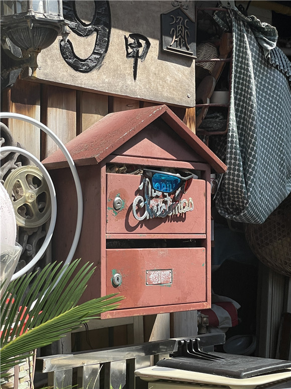 我们去时是上午,阳光正好,照射在红色砖瓦上,映出一片片暖色调。红白相间的拱形遮阳篷为每扇窗增添了点西洋味,好似每扇窗后都是一个小小的店铺,贩卖着岁月的痕迹。