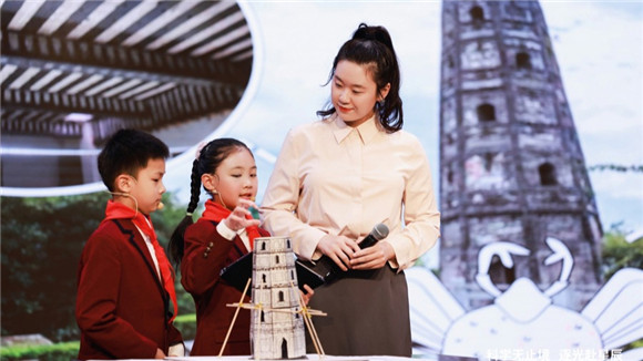 “一天,学校有一棵月季树快倒了,老师用支架撑在树的四周,防止它倒下来。顿时,我们有了灵感——可以巧妙设置一组外部支架,有效分散塔身压力,从而减小因倾斜造成的不稳定风险。”项目化学习小组学生小唐说。