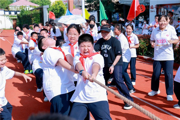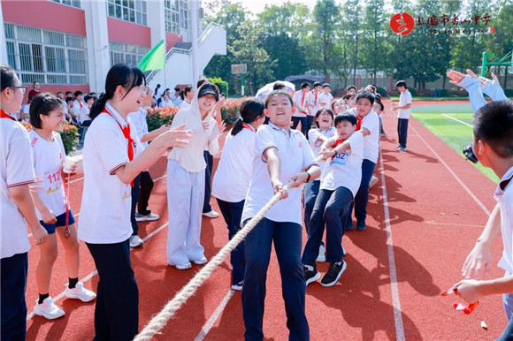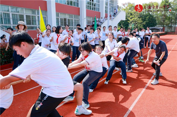 拔河对抗比赛将同学们观赛的热情推向巅峰,为运动员的喝彩与呐喊响彻整个操场。