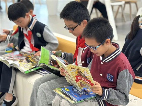 同学们或驻足书架,或席地而坐,或无声交流,或认真聆听......其乐融融的阅读画面将美好在此刻定格。