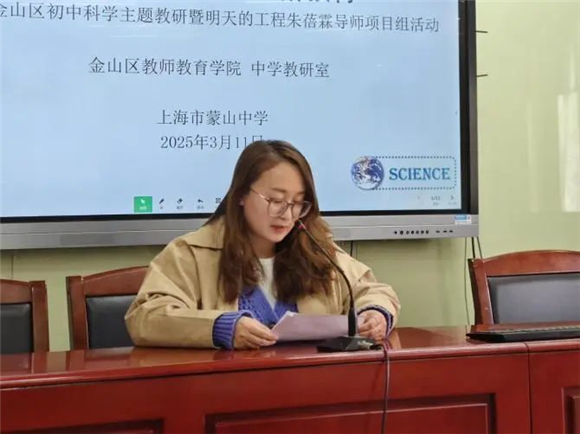 2025年3月11日,金山区初中科学主题教研暨明天的工程朱蓓霖导师项目组活动在蒙山中学举行。金山区各校科学学科教师参加本次活动,活动由金山区初中科学教研员徐爱琴主持。