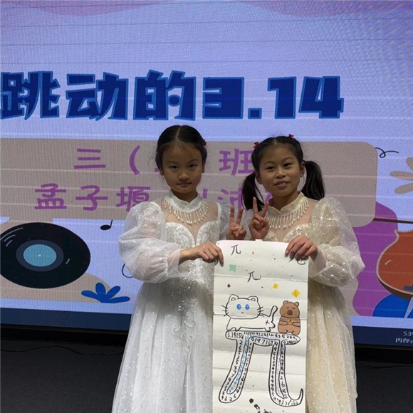 同学们用圆周率谱写出跳动的音符,用无穷小数构建数字艺术,在阅读π的书页间,我们触摸到刘徽割圆术的温度,听见祖冲之在算筹间的沉吟。精彩活动还在继续……