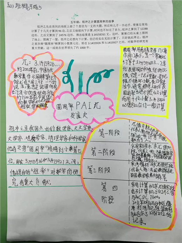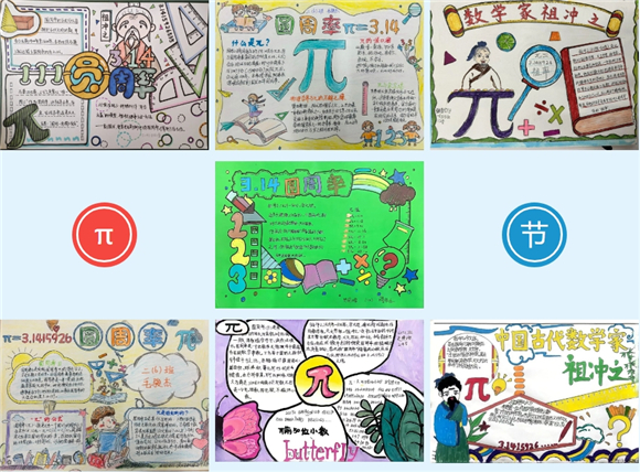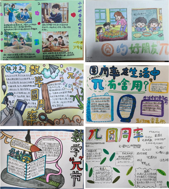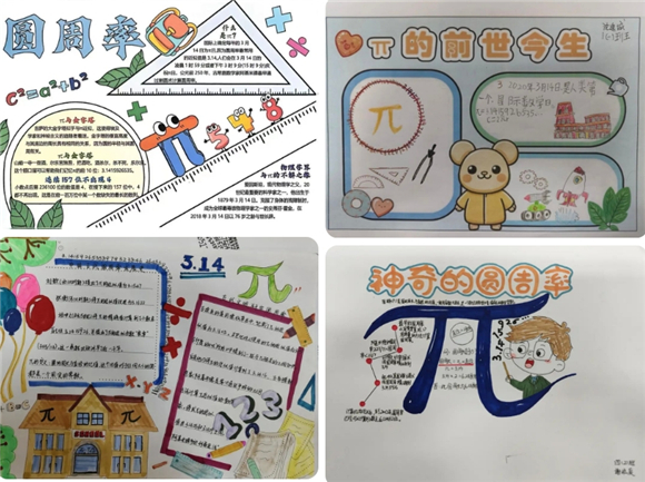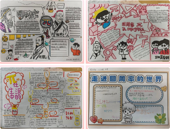 有些学生收集了关于圆周率的计算方法以及在实际生活中的应用等资料制作一份份关于圆周率的小报。