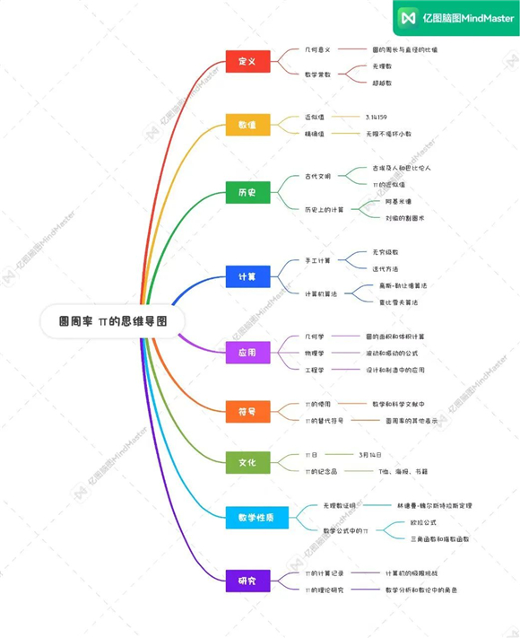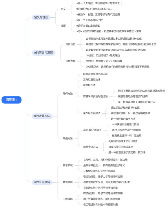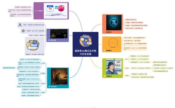 有些学生根据圆周率发展的历史制作简单明晰的思维导图。