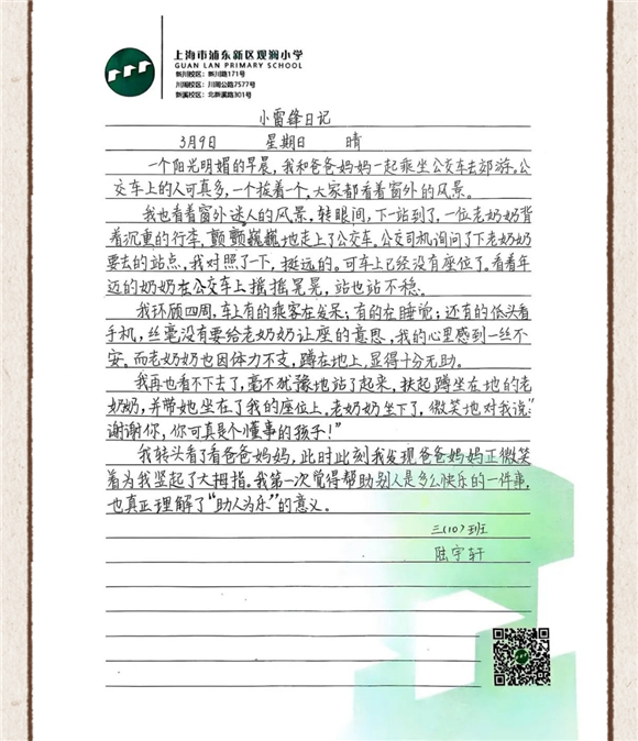 童心日记,续写雷锋故事