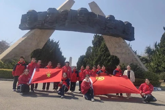 习近平总书记强调:青少年要树立理想信念:“热爱党、热爱祖国、热爱人民,用实际行动把红色基因一代代传下去”。为进一步加强学生爱国主义教育、红色场馆的学习和实践,2025年3月21日下午,上海市浦东模范中学国豪学院代表以及优秀红领巾广播社社员在大队辅导员全老师的带领下,来到浦东高桥烈士陵园参与志愿者讲解培训。