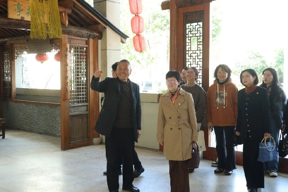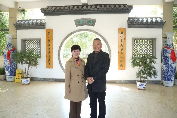 在清河湾中学校长朱国君的陪同下,工作室成员漫步校园,沉浸式感受其清雅和谐的环境与人文底蕴。朱国君阐释,学校通过环境与文化的深度融合,将每一处景观化为“无声课堂”,让学生在潜移默化中涵养品格、丰盈精神。