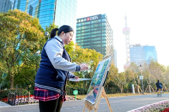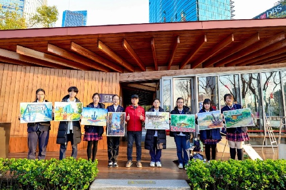 在写生活动中,同学们拿起画笔,用心记录下东岸滨江的独特魅力。陆家嘴独特的都市风貌,为同学们提供了丰富的创作素材。同学们在实地写生中,更加专注地观察光影变化,感受建筑的细节之美。一位同学表示:“实地写生让我更专注地观察光影变化,感觉自己的作品也更加生动。”另一位同学则说:“对建筑设计的细节有了新的认识,行走课堂让我学到了浦东的历史故事。”