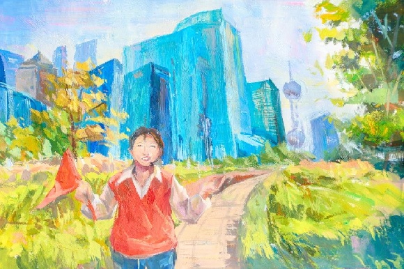 同学们的画作不仅仅是东方明珠,更是整个浦东社会变化的缩影。从高楼大厦到滨江绿地,从繁忙的金融中心到充满活力的社区,同学们用画笔描绘出他们眼中的浦东,展现了浦东开发开放三十五年来在经济、文化、社会等各方面的巨大成就。