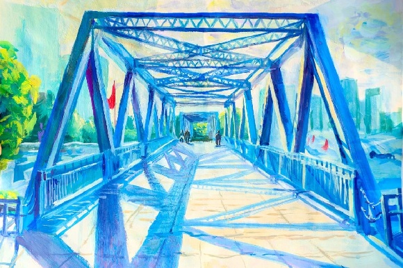 本次参加滨江写生活动,我站在江边,眼前是波光粼粼的江水,远处是繁华的城市天际线。我用画笔记录下这独特的风景,对建筑的细节有了新的认识,感受着光影的变幻和自然的韵律。在写生中,我不仅提升了绘画技巧,更体会到生活的美好与宁静。这次活动让我更加热爱艺术,了解到了浦东发展中的历史事件,也让我明白,生活中处处都有值得我们用心去发现的美。
