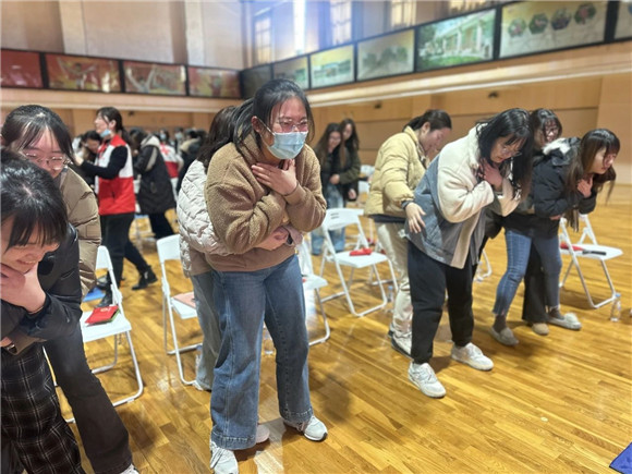 气道梗阻是急症,救治不及时会危及人的生命。在进入气道异物梗阻救护培训环节,红十字会的老师同样通过一个个真实案例,用浅显易懂的话语讲述海姆立克急救法原理与应用,并给受训老师进行了现场示范和指导,使每一位老师都能准确掌握气道梗阻急救方法的要领。