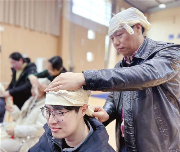 创伤救护培训主要聚焦于对伤者止血、包扎等实操技能的学习与运用。红十字会的老师通过讲解示范和实操训练,从绷带包扎到三角巾的使用,对每一位受训老师都进行了个性化指导,老师们在反复练习中也逐步掌握了止血、包扎的具体要领。