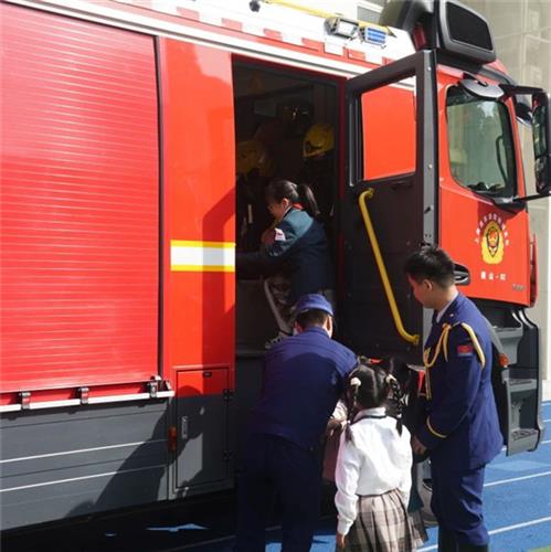 和消防员叔叔告别,跟消防车挥手后,小朋友们在竹园老师的带领下,开启了校园探索之旅。校园里的各个角落都充满惊喜:充满挑战的攀爬架,孩子们跃跃欲试;高耸的攀岩墙,激发着他们的勇气和探索精神。走进图书馆,浓郁的知识氛围扑面而来,一本本图书仿佛在诉说着奇妙的故事;神秘的实验室里,摆放着各种新奇的仪器,吸引着孩子们好奇的目光。和幼儿园相比,小学有着更丰富多样的学习空间,每一处都散发着独特的魅力,让小萌新们流连忘返。在这里的每一次发现,都在他们心中种下了期待的种子,让他们对未来的小学生活充满了憧憬,迫不及待地想要开启这段新旅程。