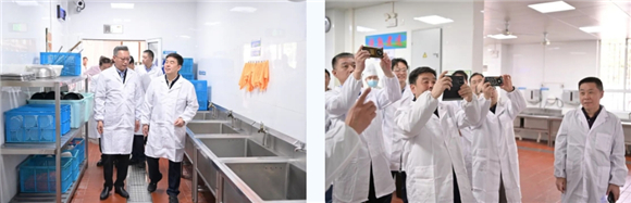 随后,走进学校食堂后厨区域,领导们详细了解食材采购验收、加工流程、餐具消毒、食品留样等环节的操作规范。考察组成员实时查看了各区域的工作实况,并对学生AB营养午餐的荤素搭配、菜品口味给予高度评价。