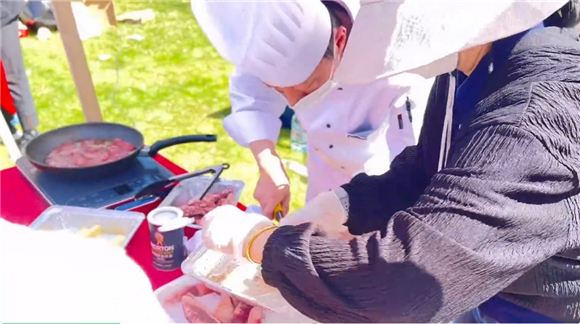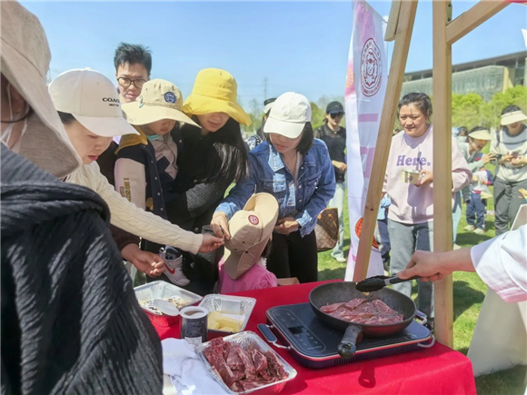 校园明星厨师贺大厨的铸铁锅腾起琥珀色烟霞,牛排滋滋作响,切开时香气扑鼻(5000元的雪花牛肉啊),呵呵呵,大班有的孩子已经排了3次队了。