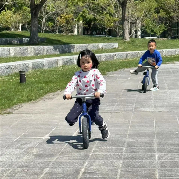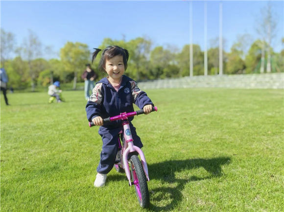 春日暖阳将金粉筛落在蜿蜒的骑行道,春风掠过新芽时哼起清脆的歌谣。一群小小孩骑车而来,车轮碾过斑驳树影,且任春风托起衣角,让车铃撞碎满径春光——此刻的骑行路,分明是大地铺展的五线谱,每个孩子都是跳动的音符。