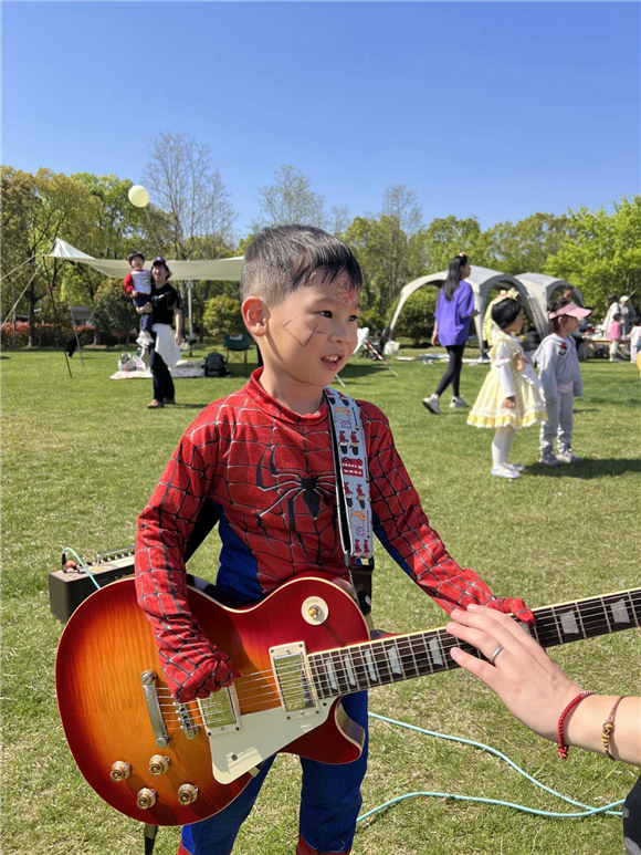 草坪中央的舞台美轮美奂——小班萌娃踮起脚尖,且让裙摆与音符共舞,教师乐队琴声悠扬婉转,指尖触碰阳光的弧度,风成了流动的指挥家,将童声、弦乐与管鸣酿成春日特调。