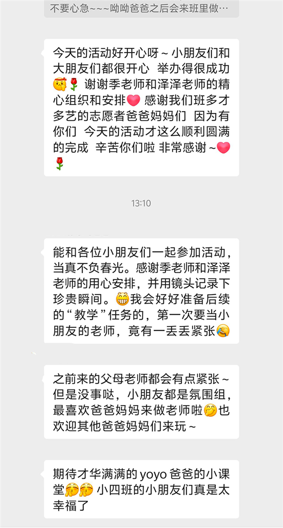 爆米花机"嘭、嘭"炸开一个个"云朵",焦糖雨簌簌落在纸筒;1000多个茶叶鹌鹑蛋填不满孩子们的小嘴;橙子在榨汁机里碎成橙光,400多只橙子让志愿者家长抬不起胳膊,好吧,年富力强的傅老师顶上来,一个接一个,一杯连一杯,孩子在香甜的春日特饮里,品尝着春天的滋味。