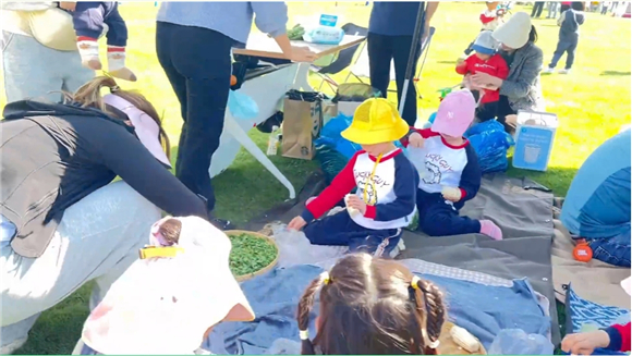 4月15日 志愿者家长、提供物质与带宠物的家长一大早就与老师一起搭建布展环境。托小班家长自驾车,中大班孩子到校乘大巴车到上海科技大学大草坪集合,"上海科技大学附属民办幼儿园春日嘉年华"完美开幕,圆满结束。