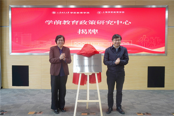 上海市教委副主任杨振峰和上海师大校长袁雯为中心揭牌。