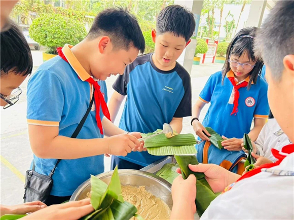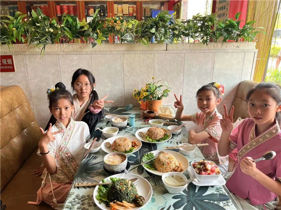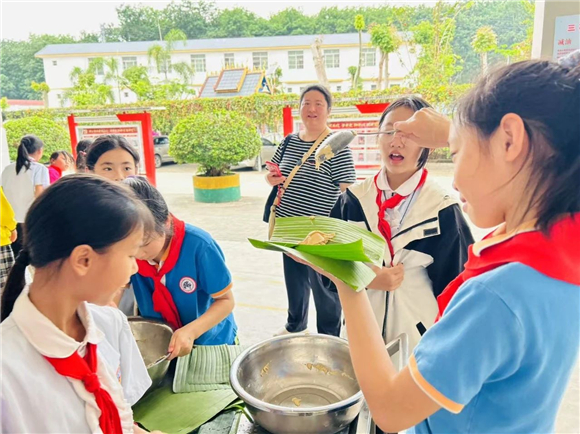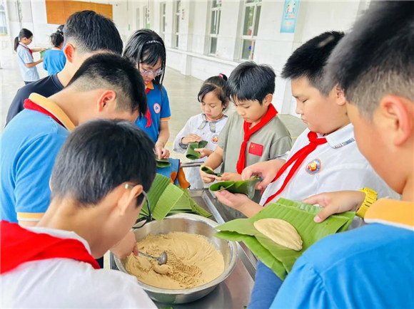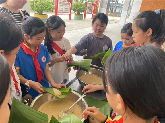 傣家特有的“豪糯索”是泼水节必不可少的美食之一。小街中心小学和上海市浦东新区进才实验小学结对的60名学生,在老师们的带领下,体验了“豪糯索”的制作过程,并品尝了自己的劳动成果,愿孩子们能够记住这西双版纳的味道,让“沪滇友谊”和民族文化在心中生根发芽。