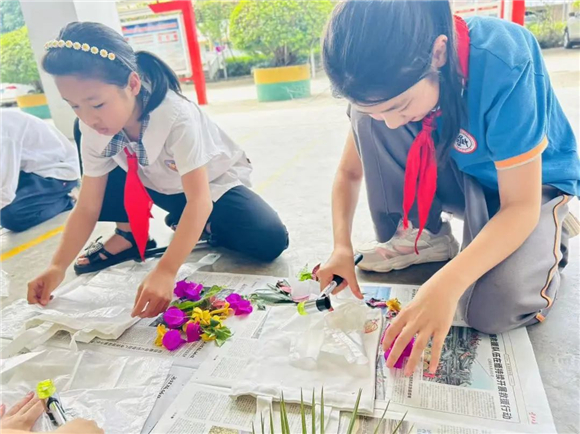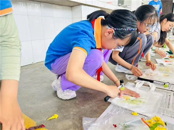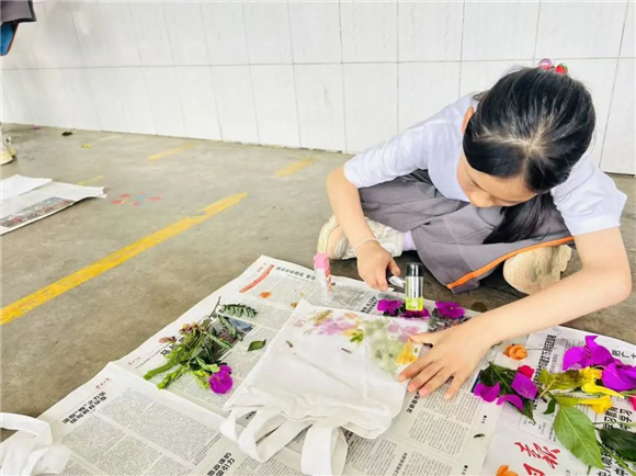 同学们共同开展了DIY手提袋植物拓印活动!活动中,大家亲手采集植物,用拓印技术将自然之美留在手提袋上,既环保又创意满满。通过这次活动,不仅锻炼了同学们的动手能力,还加深了两地学生的友谊。快来欣赏我们的独特作品,感受自然与艺术的完美结合,一起留下美好的绿色记忆!