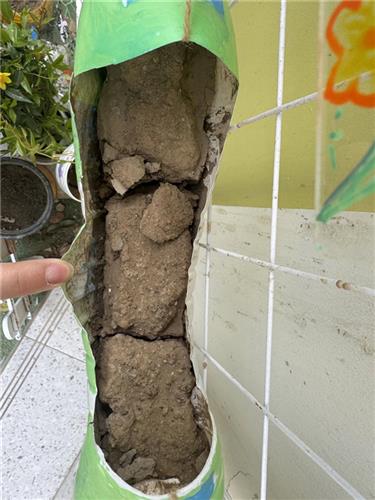 小匠们挖开花盆,发现:土壤板结非常严重,查阅资料后,知道是因浇水后未及时松土。