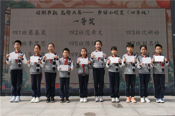 此前,学校举办了以"国潮书韵 笔锋共舞"为主题的书写大赛,每一位学生都踊跃参与,用笔墨抒发对传统文化的热爱。开幕式上,学校为本次大赛一等奖获得者及优胜班级进行了隆重的颁奖仪式。每一位获奖者手捧荣誉证书,脸上洋溢着自豪的笑容。他们的作品有的笔力遒劲,有的清新秀丽,每一笔每一划都凝聚着对传统文化的敬畏与热爱。获奖班级的代表们也满怀喜悦,他们深知这份荣誉是全班同学共同努力的结果。