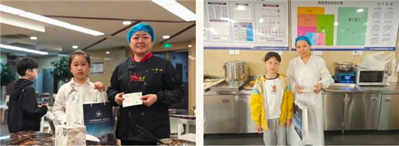一、二年级的小“睛睛”们则是用稚嫩的语言描绘出对校园劳动者的敬意。食堂的叔叔阿姨收到卡片时,在欣喜中带着一份感动,真挚地说道:“孩子们的语言虽然很可爱,但是把我们送汤、送饭等工作都写进去了,孩子们开心,我们做这份工作就值了!”党团员教师分头带领学生将卡片送到每一位劳动者手中,学校其他工作人员也都非常惊喜,整个黄一中心校园里洋溢着温馨的感恩氛围。