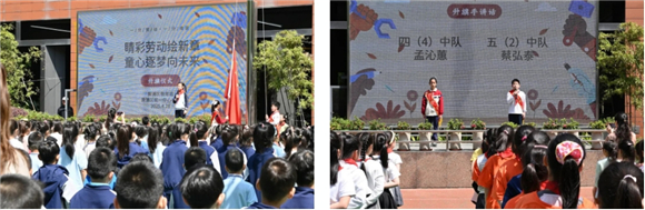 值得一提的是,“睛睛说队史”作为学校的少先队特色项目,以“学一段习语”“荐一部影片”“明一段队史”“做一件好事”开展,也让劳动精神在队员心中生根发芽。