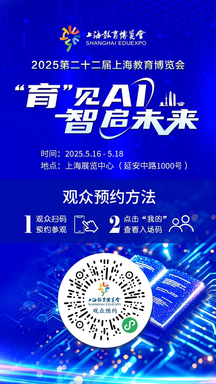 2025第二十二届上海教育博览会(以下简称"教博会")将于5月16日在上海展览中心开幕。本届教博会由上海教育报刊总社主办,以"‘育’见AI,智启未来"为主题,将继续采用线上、线下相结合的方式进行。其中,5月16日-18日为线下展,同期线上开展至6月底。从5月9日起,观众可通过"上海教育博览会"小程序,进行"预约参观"。