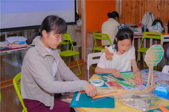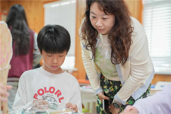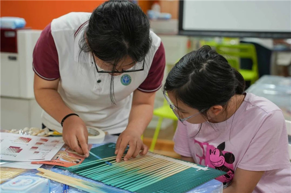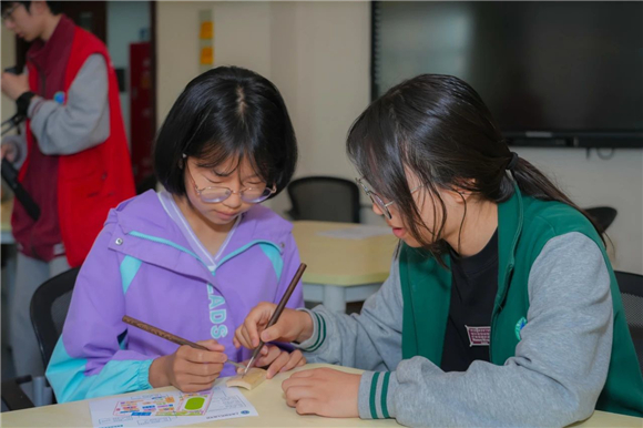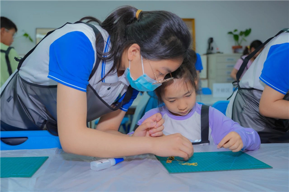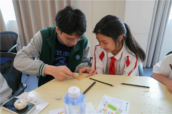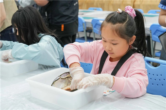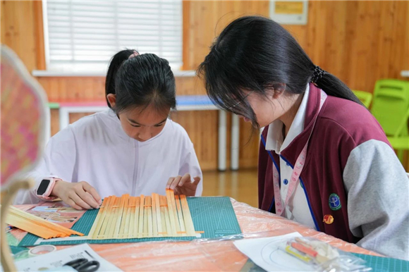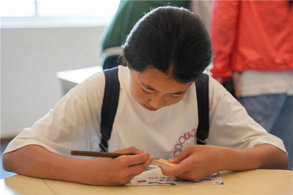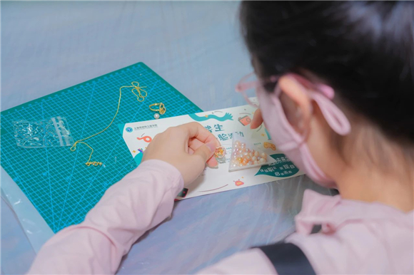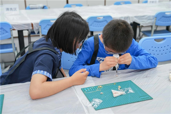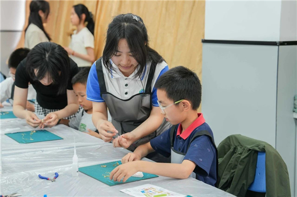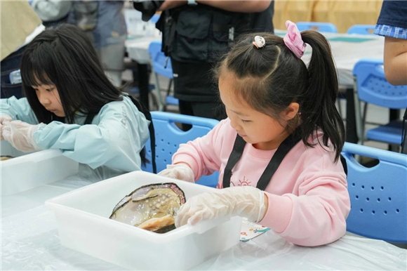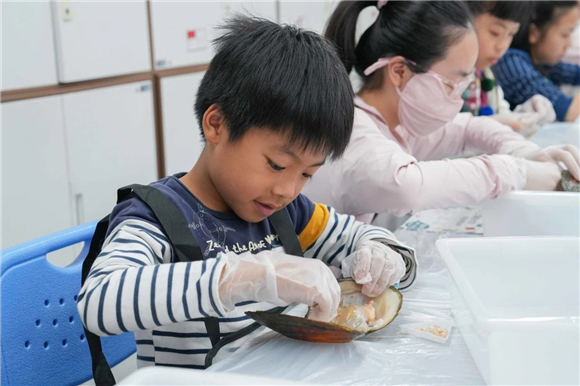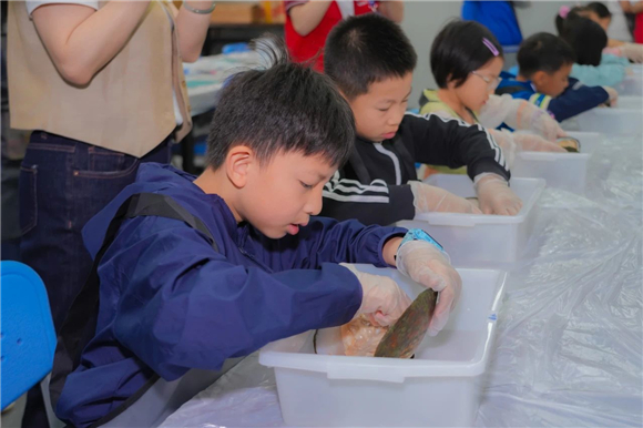除了这些与"竹"紧密相关的项目外,其他体验项目同样亮点纷呈。在"湖光淬贝·开蚌寻珠"项目里,同学们仿佛开启了一场神秘的寻宝之旅。从挑选贝壳开始,用特制工具开蚌取珠,再化身为珠宝设计师,将珍珠制成独一无二的首饰。整个过程中,他们不仅了解了珍珠形成与鉴赏的相关知识,更收获了超越物质价值的成就感,那颗亲手开采的珍珠化为照亮他们未来职业道路的星辰。