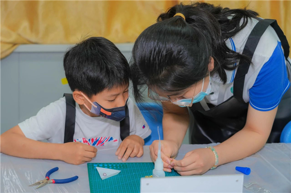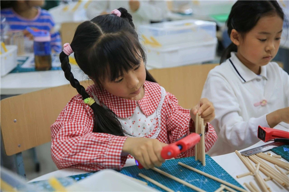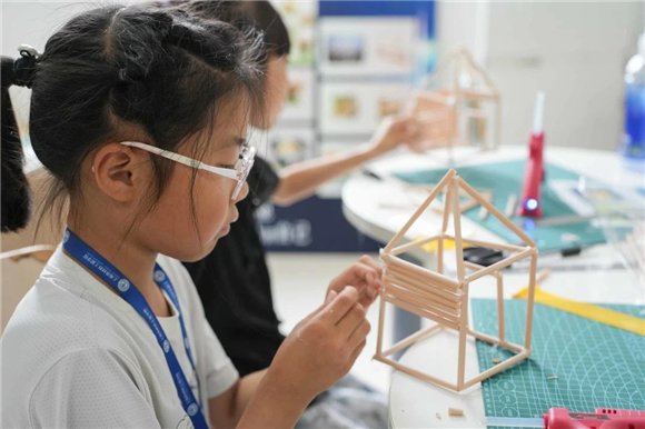 在"慧材工坊·环保竹纤维模型创意制作"项目中,同学们化身小小建筑师,在老师的指导下,利用竹纤维吸管构建出独具创意的建筑模型。这一项目紧密结合学校的"慧·竹"文化内涵,同学们不仅亲身体验到建筑结构的科学原理,更深刻理解了绿色建材和可持续发展的理念。那一根根竹纤维吸管,如同"慧·竹"文化的使者,传递着环保与创新的精神,激发了同学们对环保新材料技术的浓厚兴趣。