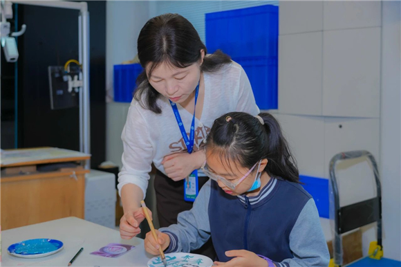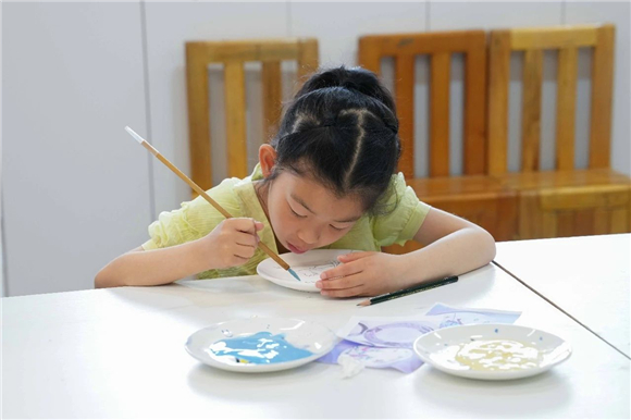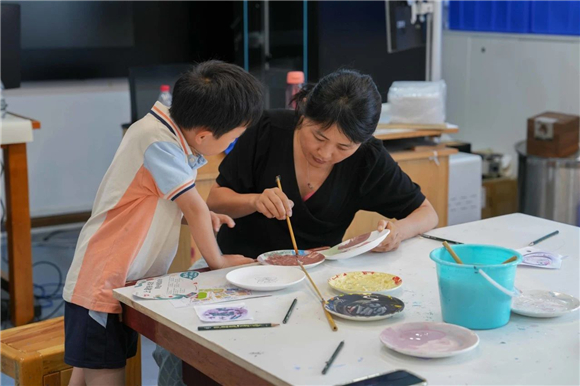 "海派彩瓷"项目则带领同学们走进上海市非物质文化遗产的世界。同学们在老师的讲解下,了解中国瓷器的历史与文化,还能在老师的帮助指导下,自行在陶瓷素胚器皿上进行图案绘制,用陶瓷专用高温颜料在花瓶、碗、盘、罐等器物(素坯)上绘制花鸟、山水、人物、图案等装饰题材,亲身感受传统艺术的博大精深。体验完成后,待作品统一烧制,同学们便可自行到校领取,留作珍贵的纪念。