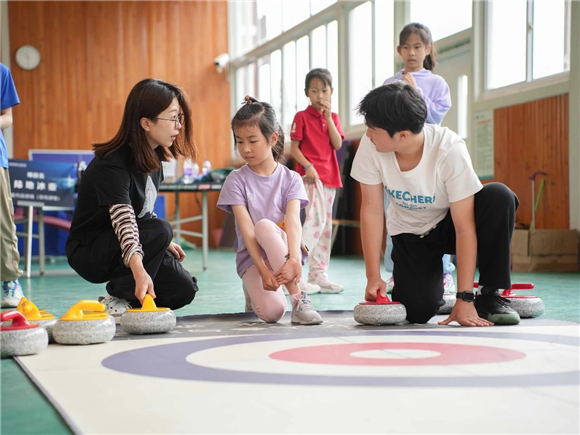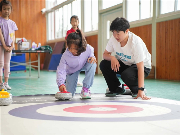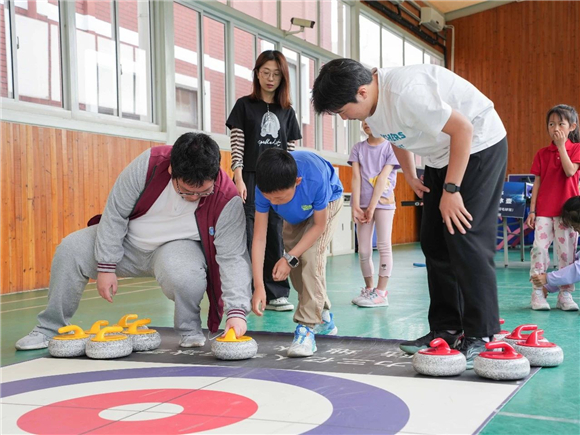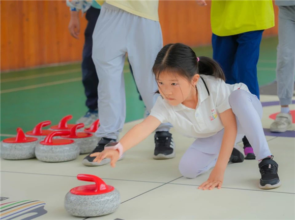 "陆地冰壶"项目现场热闹非凡。这是一项老少咸宜的无限制智力运动,有着很强的运动魅力,讲究队友间的合作与策略。在参与过程中,同学们增强了团队意识,锻炼了身体的柔韧性和对力量的控制能力,同时也提升了大脑的应变能力、判断能力和对时机的把握能力,还培养了绅士风度。