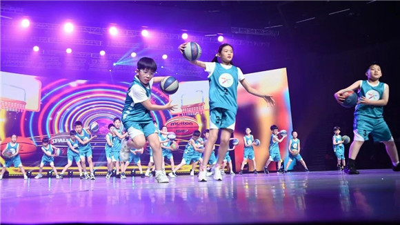 篮球少年们以一场《快乐童年》篮球操表演点燃运动激情,运球、传球、扣球……娴熟的技巧引得全场喝彩,这一个个欢乐的时刻正是师生们在日常学习锻炼中的生动再现。