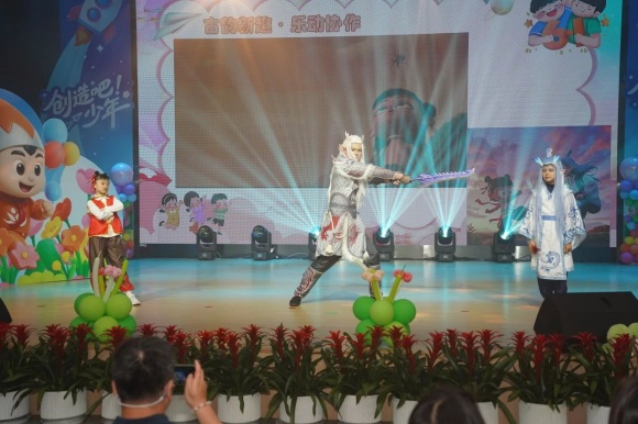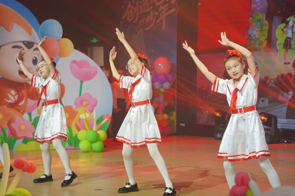 丽园师生融合科技、劳动等带来创意表演,身着盛装,用歌声、创意与汗水,编织出了属于童年的闪耀篇章。