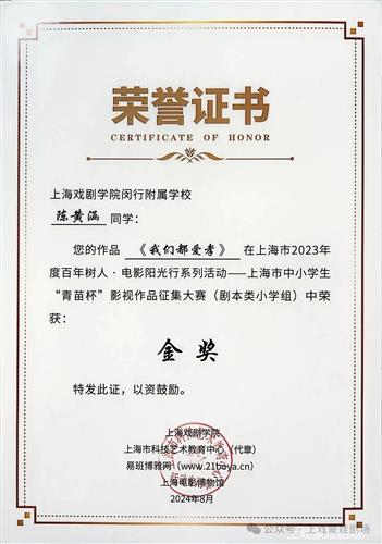 上海市“青苗杯”影视作品征集大赛中创佳绩