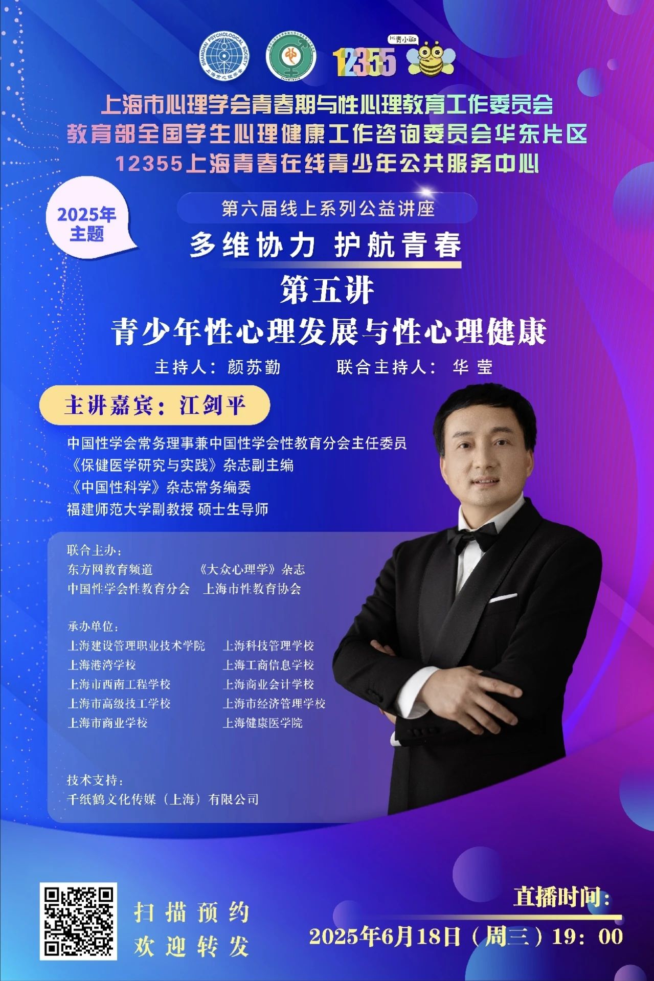 欢迎扫描海报二维码,预约观看"多维协力护航青春"线上系列公益讲座。